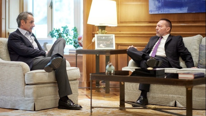 Ο πρωθυπουργός Κυριάκος Μητσοτάκης είχε σήμερα συνάντηση στο Μέγαρο Μαξίμου με το διοικητή της Τραπέζης της Ελλάδος, Γιάννη Στουρνάρα.