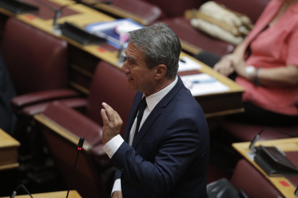 Ο βουλευτής του Κινήματος Αλλαγής Ανδρέας Λοβέρδος μιλάει κατά τη διάρκεια της μόνης συζήτησης και ψήφισης επί της αρχής, των άρθρων και του συνόλου του σχεδίου νόμου: «Κύρωση της Συμφωνίας μεταξύ της Ελληνικής Δημοκρατίας και της Ιταλικής Δημοκρατίας για την οριοθέτηση των αντίστοιχων Θαλασσίων Ζωνών τους» και «Κύρωση της Συμφωνίας μεταξύ της Κυβέρνησης της Ελληνικής Δημοκρατίας και της Κυβέρνησης της Αραβικής Δημοκρατίας της Αιγύπτου για την οριοθέτηση της Αποκλειστικής Οικονομικής Ζώνης μεταξύ των δύο Κρατών», στην Ολομέλεια της Βουλής, Αθήνα, Τετάρτη 26 Αυγούστου 2020. ΑΠΕ-ΜΠΕ/ΑΠΕ-ΜΠΕ/ΚΩΣΤΑΣ ΤΣΙΡΩΝΗΣ
