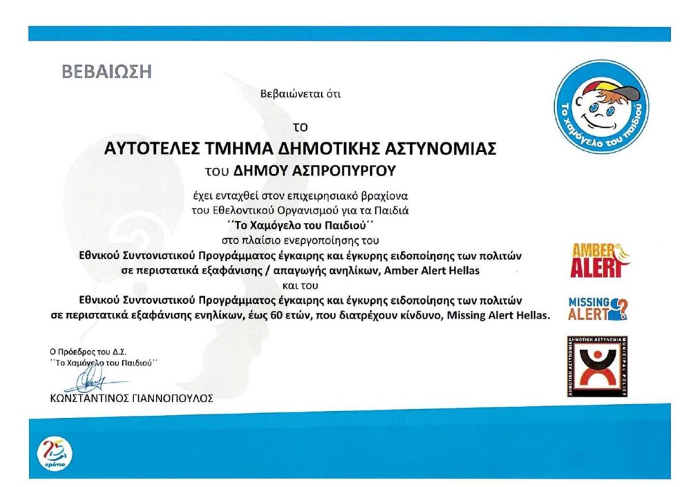 Το πρόγραμμα εκπαίδευσης εντάσσεται στο πλαίσιο δράσεων της Ακαδημίας Εκπαίδευσης & Επιμόρφωσης Smile Academy – μίας Ακαδημίας με φυσική και ψηφιακή παρουσία, την οποία έχει ιδρύσει ο Οργανισμός με στόχο την ανάπτυξη δεξιοτήτων, ικανοτήτων, στάσεων ζωής και συνηθειών από μικρούς και μεγάλους. Μετά το τέλος της Θεωρητικής Εκπαίδευσης δίδεται η δυνατότητα σε συνεργασία με το Επιχειρησιακό Κέντρο Εκτάκτων Αναγκών του Οργανισμού «Το Χαμόγελο του Παιδιού» το Αυτοτελές Τμήμα Δημοτικής Αστυνομίας, να συντάξει Ειδικό Εγχειρίδιο Κινητοποίησης με σκοπό την άμεση ανταπόκριση στο πεδίο σε περιστατικά εξαφανίσεων στην περιοχή ευθύνης της. Το εκπαιδευτικό πρόγραμμα, πραγματοποιήθηκε διαδικτυακά μέσω της πλατφόρμας CISCO WEBEX MEETINGS.