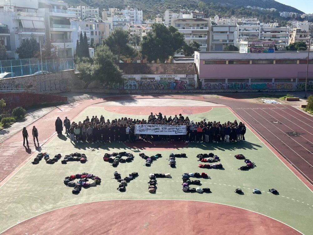 ÌáèçôÝò ôïõ 1ïõ Ãõìíáóßïõ Çëéïýðïëçò ó÷çìáôßæïõí ìå ôéò ó÷ïëéêÝò ôïõò ôóÜíôåò ôç öñÜóç «Íá öýãù; Öýã养 èÝëïíôáò íá óôåßëïõí Ýíá ìÞíõìá óõìðáñÜóôáóçò óôéò ïéêïãÝíåéåò êáé óôçí ìíÞìç ôùí èõìÜôùí ôïõ ðïëýíåêñïõ óéäçñïäñïìéêïý äõóôõ÷Þìáôïò óôá ÔÝìðç, ÐáñáóêåõÞ 3 Ìáñôßïõ 2023. ÁÐÅ-ÌÐÅ/ÄÇÌÏÓ ÇËÉÏÕÐÏËÇÓ/STR