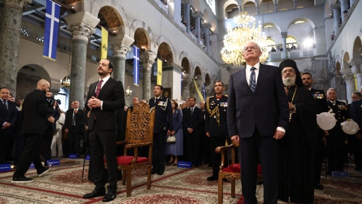 Άρχισε η επίσημη δοξολογία στο ναό του Αγίου Δημητρίου, παρουσία του Προέδρου της Δημοκρατίας Κωνσταντίνου Τασούλα, για τον διπλό εορτασμό του Πολιούχου Αγίου Δημητρίου και της 113ης επετείου από την απελευθέρωση της Θεσσαλονίκης.