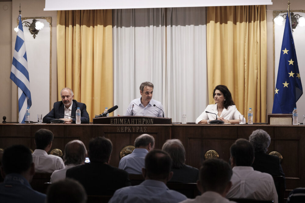 Ευρεία συνάντηση με τους παραγωγικούς φορείς της Κέρκυρας είχε το μεσημέρι ο πρωθυπουργός Κυριάκος Μητσοτάκης .