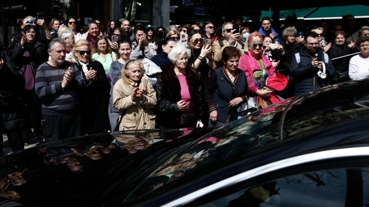 Με παρατεταμένα χειροκροτήματα και φωνάζοντας “αθάνατη” από τον κόσμο που από το πρωί προσήρχετο για να αποτίσει φόρο τιμής στη Μαρινέλλα στο λαϊκό προσκύνημα της σορού της στο παρεκκλήσιο του Αγ. Ελευθερίου στη Μητρόπολη. Μπροστά στο φέρετρο στέκονταν η αδελφή της, η κόρη της Τζωρτζίνα και τα εγγόνια της Μελίνα και Δημήτρης.