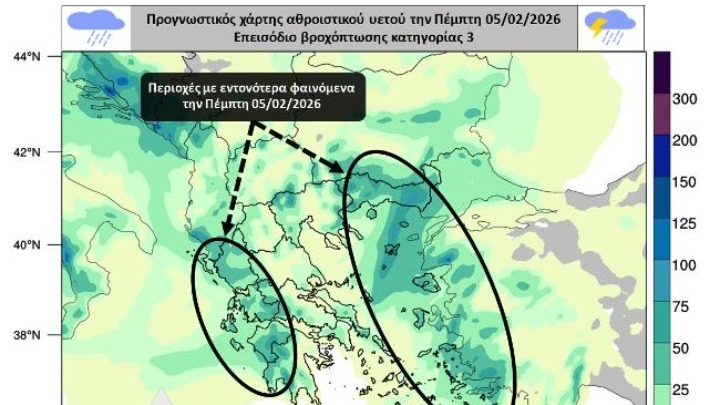 Σημειώνεται ότι σύμφωνα με το Έκτακτο Δελτίο Επιδείνωσης Καιρού (ΕΔΕΚ) που εκδόθηκε σήμερα από την Εθνική Μετεωρολογική Υπηρεσία (ΕΜΥ), πρόσκαιρη επιδείνωση του καιρού με ισχυρές βροχές, καταιγίδες και πιθανώς κατά τόπους χαλαζοπτώσεις προβλέπεται, από σήμερα το βράδυ (Τετάρτη 04-02-2026) στη βορειοδυτική χώρα και αύριο Πέμπτη (05-02-2026) στις υπόλοιπες περιοχές της δυτικής Ελλάδας, τα βορειοανατολικά ηπειρωτικά και την ανατολική νησιωτική χώρα.