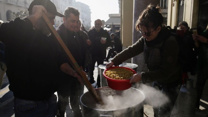 Τριακόσιες μερίδες φαγητού για άπορους της Θεσσαλονίκης πρόσφερε η Προεδρία της Δημοκρατίας και τις μοίρασαν μέλη της Κοινωνικής Κουζίνας “Ο Αλλος Ανθρωπος”, σε ένα υπαίθριο μαγειρείο που στήθηκε στην πλατεία Αριστοτέλους.