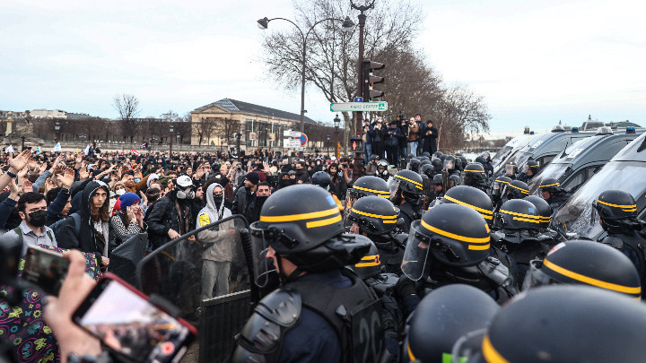 Οι δυνάμεις της τάξης επενέβησαν νωρίς χθες το βράδυ στην Πλας ντε λα Κονκόρντ, κοντά στο κτίριο της Εθνοσυνέλευσης. Η πλατεία είχε καταληφθεί από χιλιάδες διαδηλωτές που ήταν αντίθετοι στη μεταρρύθμιση του συνταξιοδοτικού.